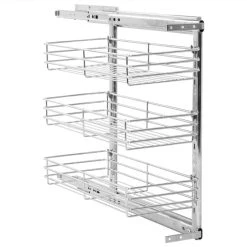 Our pull-out wire basket is easy to install into your kitchen cupboard with the included mounting accessories. Equipped with 3 shelves, this wire basket presents a simple yet practical solution to optimise the storage space of your kitchen cupboard. Made of silver electroplated wire, this kitchen storage basket exudes a clean and modern look and is exceedingly durable. Additionally, the included sliding runners allow you to pull out or push in the wire basket smoothly and quietly.