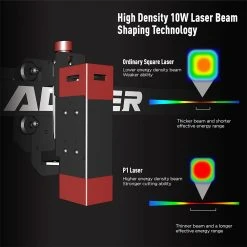 ACMER-P1 10W Laser Engraver obtains 0.06×0.08mm spot as S9 through laser beam shaping technology, which means that the P1 has higher energy density, stronger cutting penetration, and engraving capabilities.