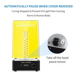 Anti-UV Light Hood: The transparent cover of this wash cure machine can block up to 99.95% of ultraviolet rays with a wavelength of 405nm, thus able to be effective in high resin solidification rate; and adopts enclosed washing busket to prevent liquid splashing and volatilization