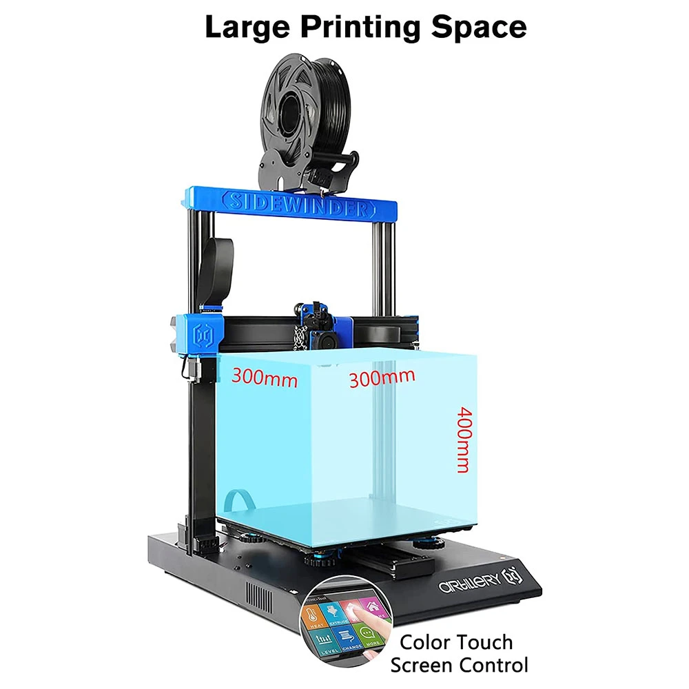 Sidewinder X2 3D printer features a 300 x 300 x 400mm build volume and color touchscreen control. It is simple and easy to understand the operating interface, bringing you more possibilities for creating your 3D printings.