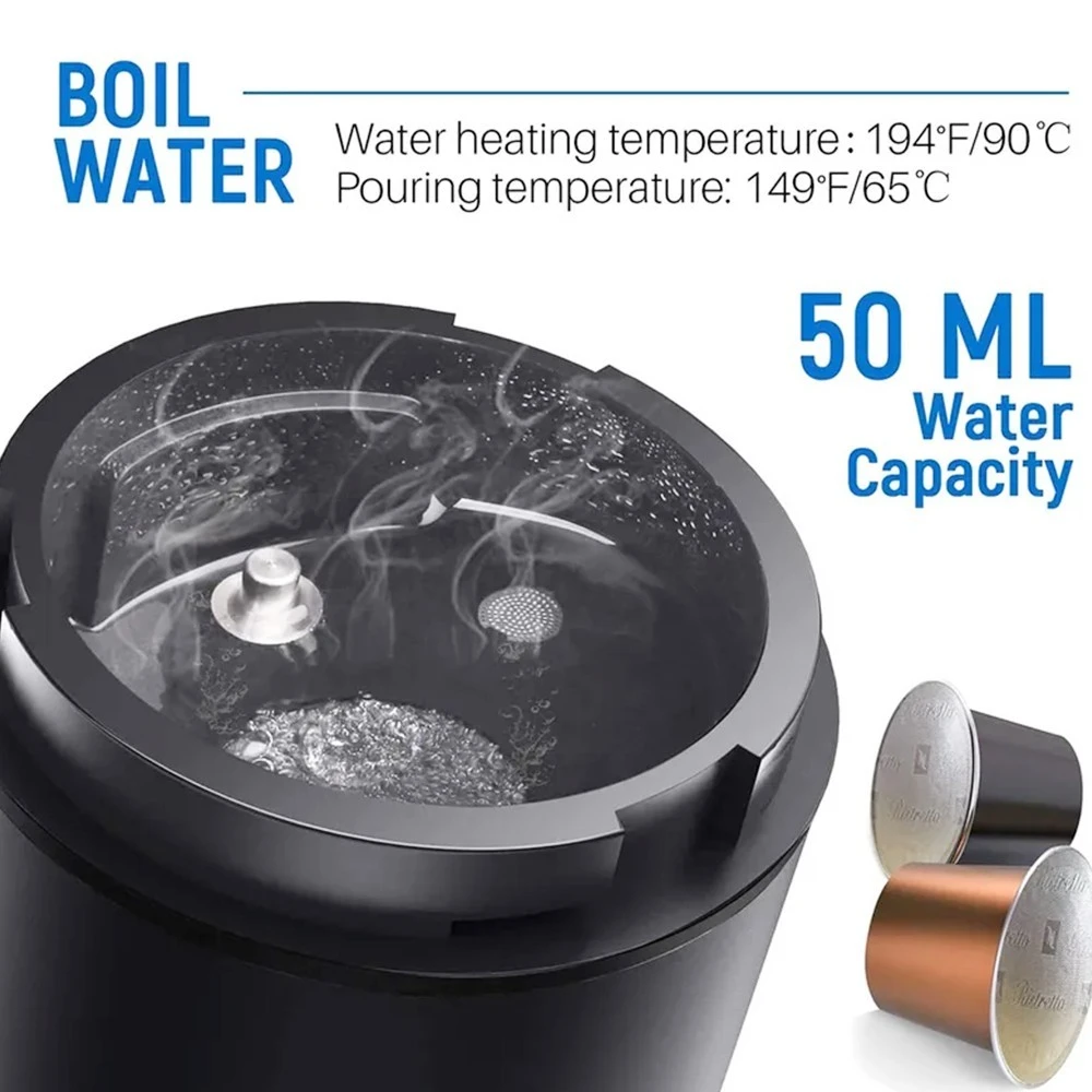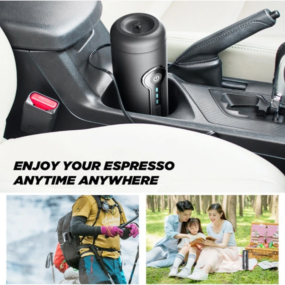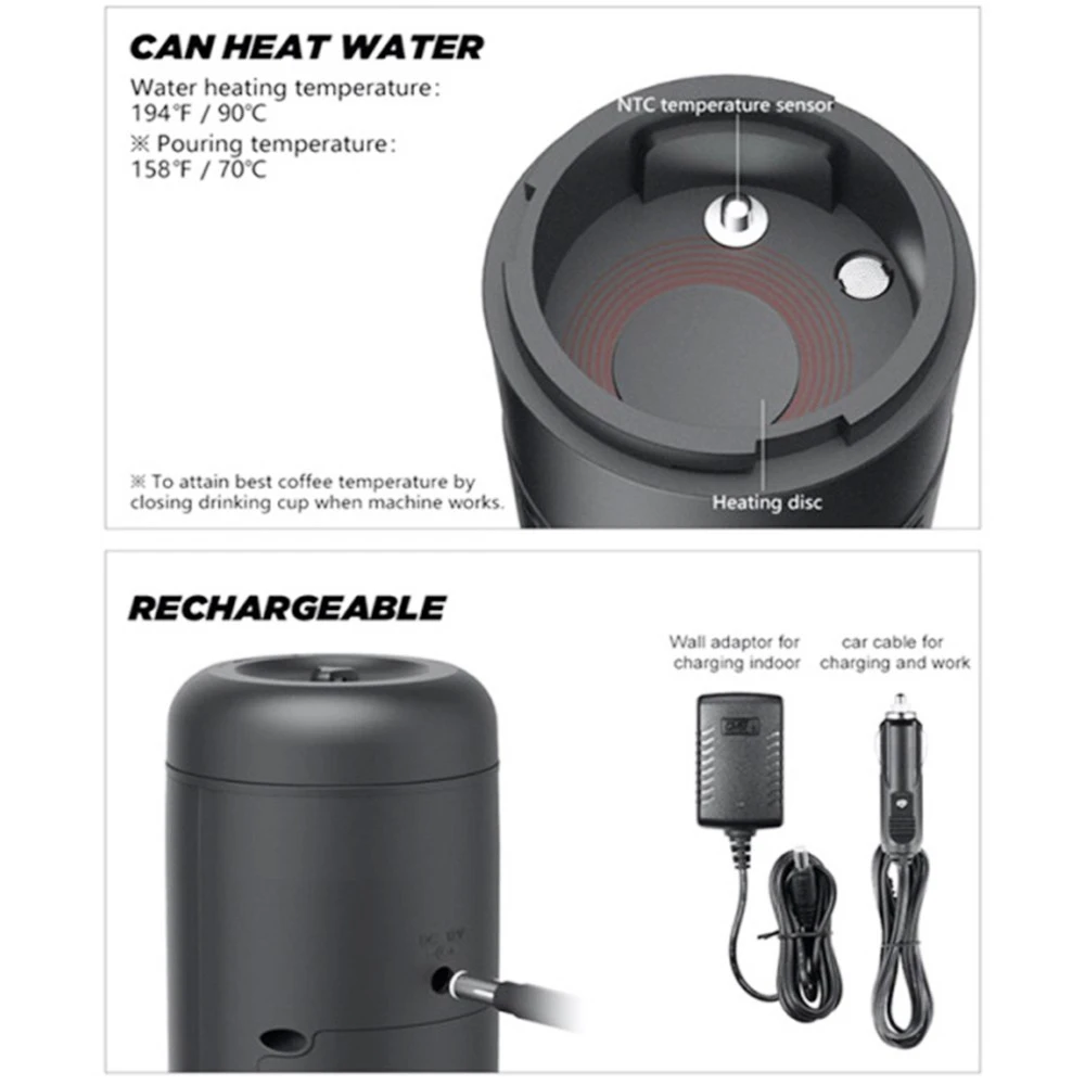 2. With an outdoor compact and light-weighted design, you can place it in your bag. You can use a 12V 7A car cable either to charge or to make coffee.