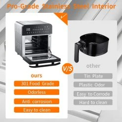 BioloMix air fryer interior is made with 304 food-grade stainless steel instead of tin-plating, ensuring eating safety and no odor, BPA-free, easy-cleaning as well as anti-corrosion.