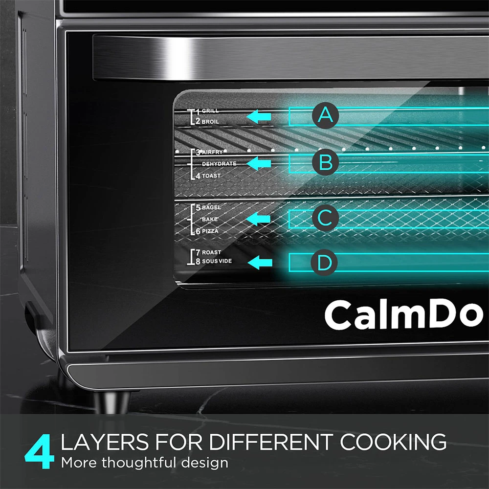 It has 12 preset functions, and each function can be DIY set. 4 times faster than ordinary toaster ovens and air fryers, this multifunctional convection oven has functions of air fryer, bake, broil, toast, dehydration, and microwave.