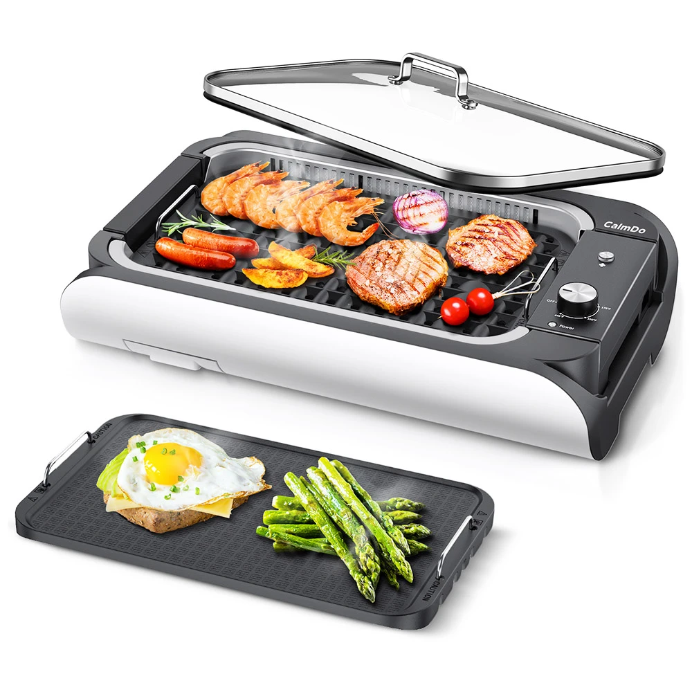 Using airflow technology and a smoke-catching fan, the CalmDo Electric Smokeless Grill quickly reduces annoying smoke and odors by 90% while maintaining the authentic taste of a charcoal grill.