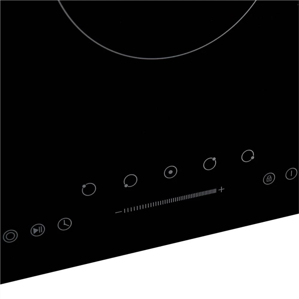 This built-in hob with clean symbols and an effortless operation is very easy to use. The electric hob features sensor touch control and 5 auto hotplates with 9 cooking levels. The domino hob top is made of heat-resistant glass, boasting durability and safety. It contains 5 burners that can be used individually or simultaneously. Triple and oval zone design is for larger cookware and faster heating. It is a conventional hob that is compatible with all types of flat cookware. The temperature is monitored by the built-in sensor, so the hob is switched off automatically if it is too hot or you have forgotten to switch it off. Thanks to its after residual heat indicator, the display gives you a warning when the stove remains heated for some extra time and releases residual heat. It also emits an acoustic signal after the selected time or be switched off after a set time with the individual timer (up to 99 minutes). Additionally, the child safety lock prevents little hands from adjusting the controls and locks the controls for cleaning. This safe and stylish electric cooker ensures a happy kitchen life you can enjoy!