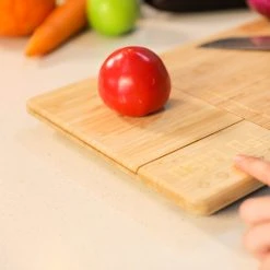 You can also use the smaller cutting board for food scraps, as an area to store cut foods, and for transferring your chopped food to the stove.
