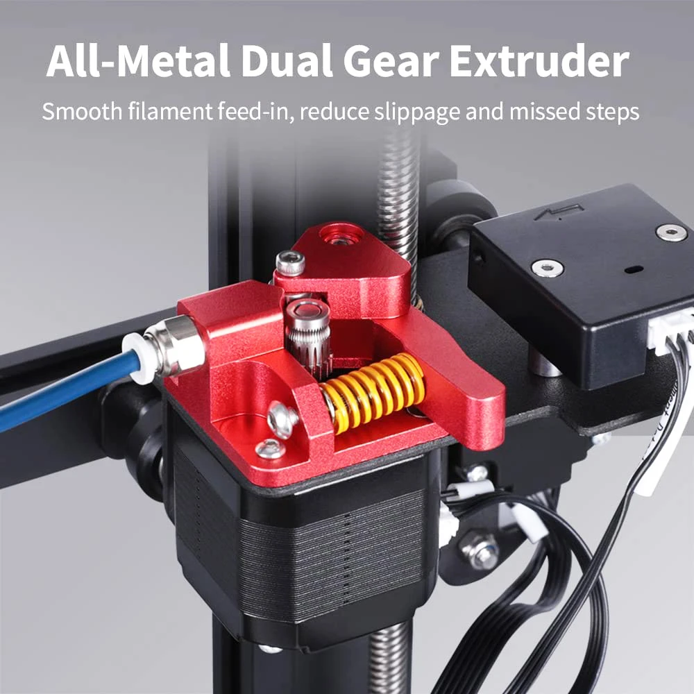 The double-gear metal extruder is equipped with a spring elasticity adjustment design and a special titanium alloy pipe, which reduces the risk of nozzle clogging, makes the output more uniform, and the printing is more stable.