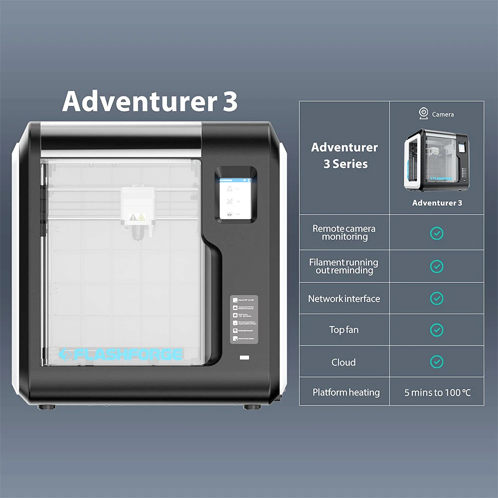Built-in camera: records 3d printing process in real-time, allows you to monitor 3d printing status through FlashCloud or PolarCloud anywhere,anytime.