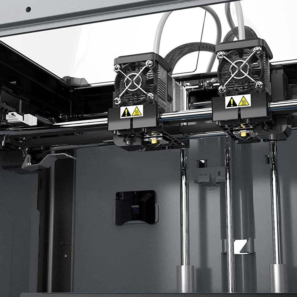 Independent dual extruders: enable diverse 3d printing modes including Mirror Mode, Duplicate Mode, Dual Filament Printing Mode, and Dual Color Printing Mode.