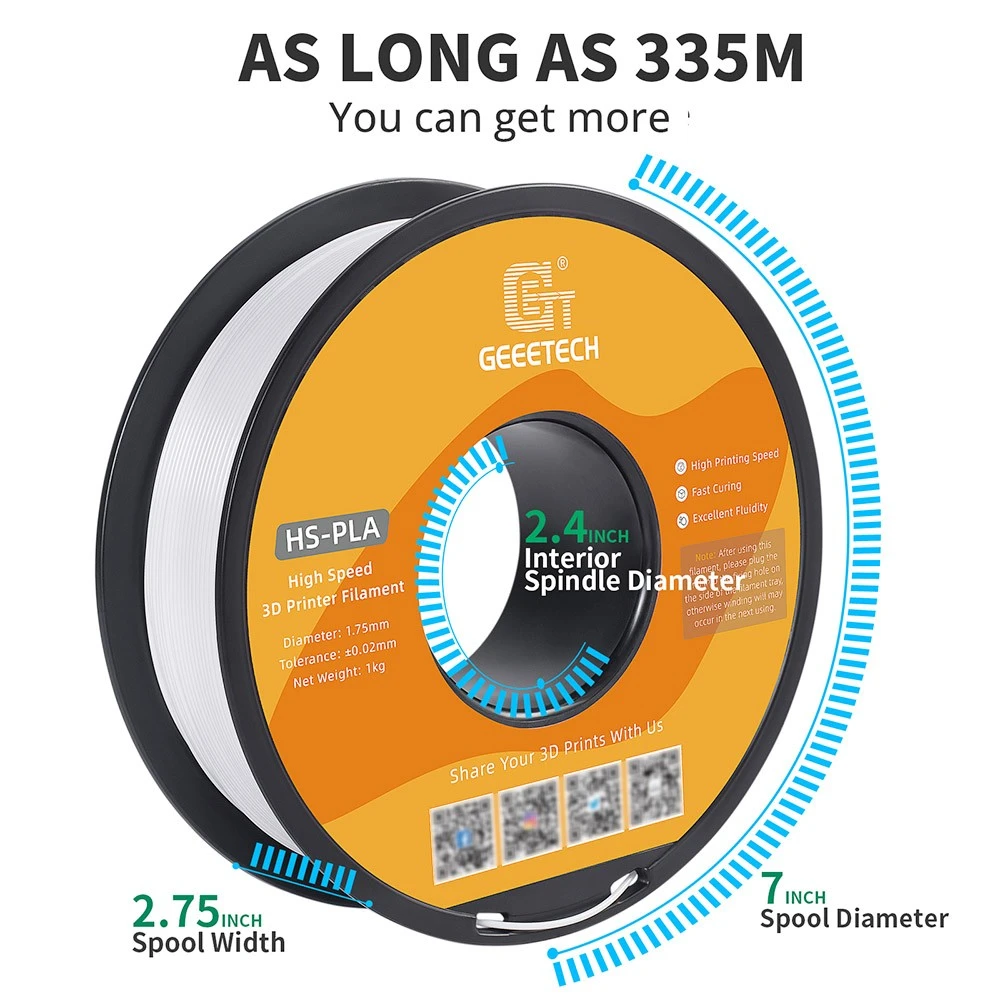 HS-PLA is Geeetech’s latest high-speed printing filament. By adjusting the melting point/index, glass transition temperature of raw materials, and optimizing the production process, Geeetech enables high speed PLA to have stronger fluidity, smoother discharge, faster curing and forming speed, and is not easy to deform under the melting condition.