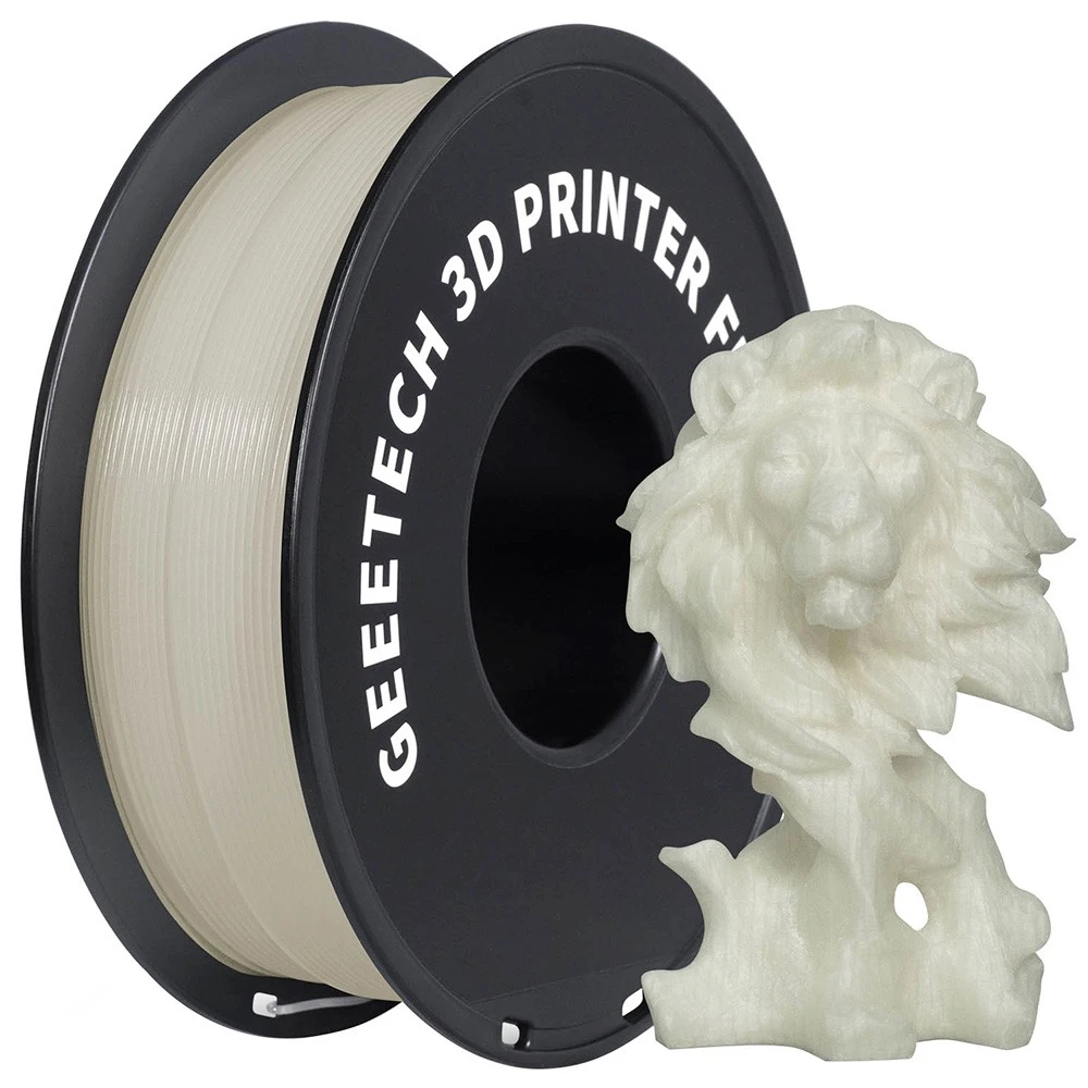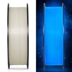This filament contains phosphorescent materials that glow in the dark after absorbing light energy. Exposure to strong sunlight or UV light for only 30 minutes will get an amazing glow effect, but too long exposure time may damage the glowing filament.