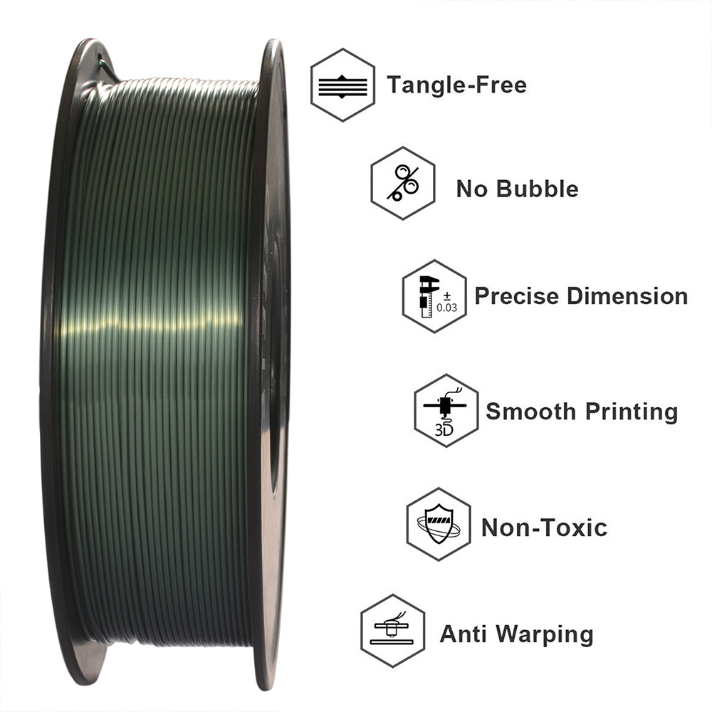 The special color of PLA Silk Filament brings smooth shiny surfaces, which definitely gives eye-catching and glossy prints. It’s very suitable to print decorations or gifts for all kinds of festivals and cosplay.