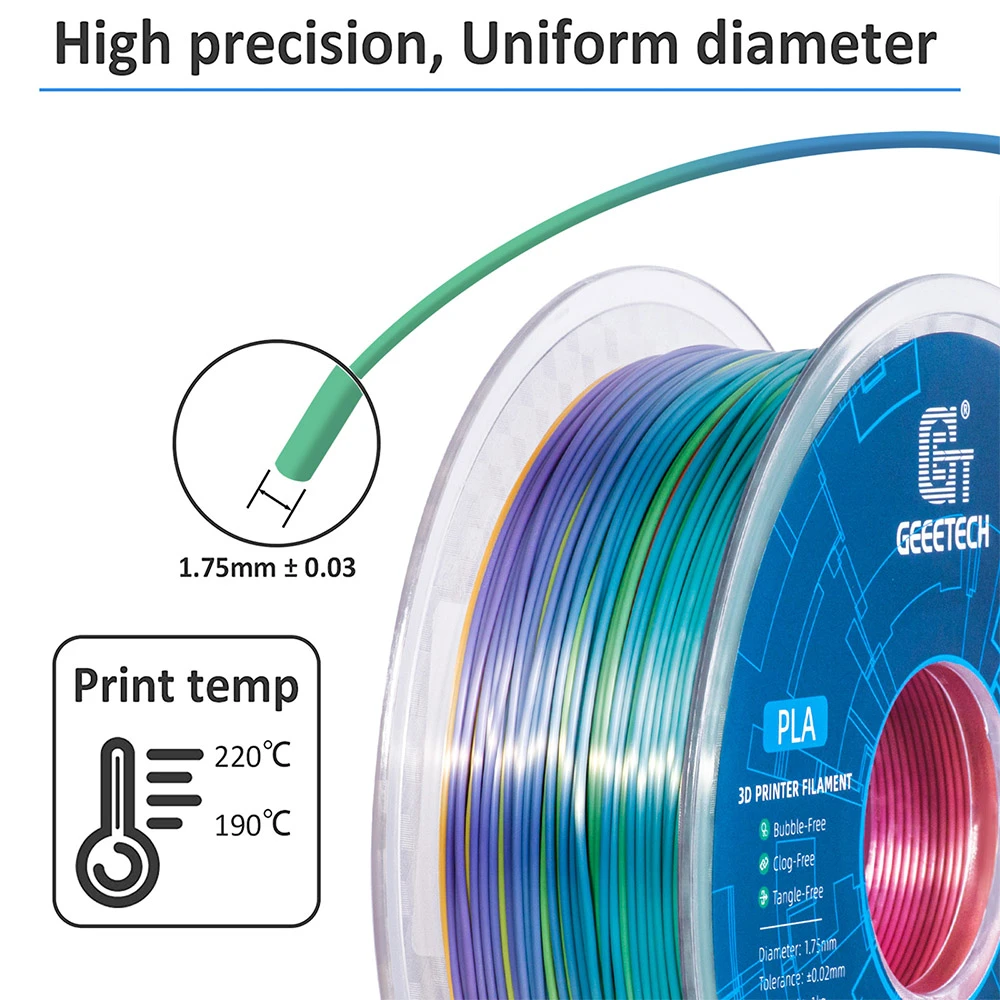 Geeetech PLA has strict tolerances, 1.75mm diameter, and +/- 0.03mm dimensional accuracy. It works perfectly with all common 1.75mm FDM 3D printers.