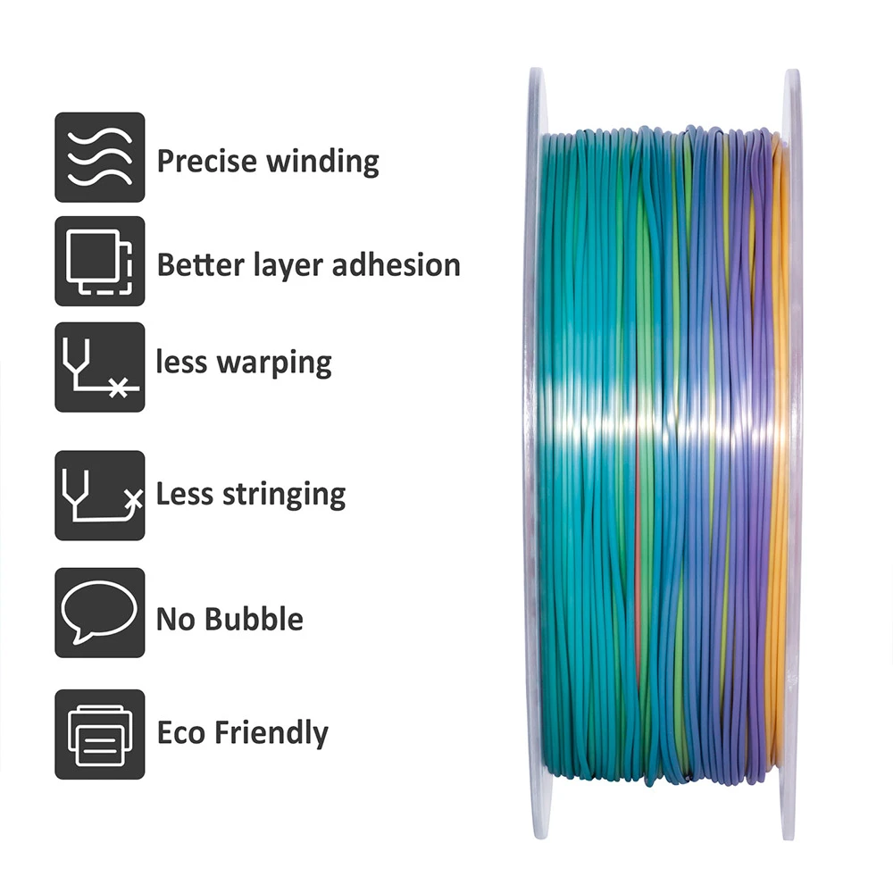 This filament is anti-warping and has high accuracy, no bubble, no jamming, and no drawing. The recommended printing temperature is 200-230 Celsius, and the hotbed temperature is 40-60 Celsius.