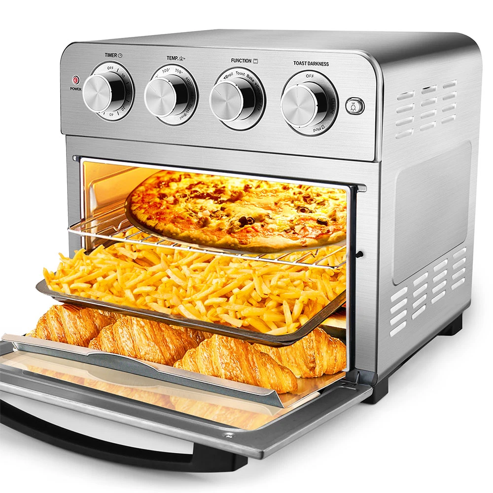 24.5QT,3 rack levels allow you to prepare family-sized quantities for up to 10 people at once or control how fast and crispy your food cooks. With a compact and sleek design, this air fryer oven can be placed on your countertop or stored away when not in use.