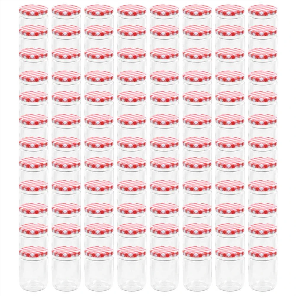 Our glass jam jars have a capacity of up to 230 ml. They present an ideal solution for storing chutney, jams, pickles, sauces, preserves, etc. Made of transparent glass, these jam jars exude a simple and clean look, allowing you to easily monitor and identify. The wide mouth ensures you put or take out preserves easily and quickly. Additionally, equipped with a red and white lid, the glass containers feature a good sealing, ensuring your preserves stay fresh for longer. Delivery includes 96 glass jam jars.
