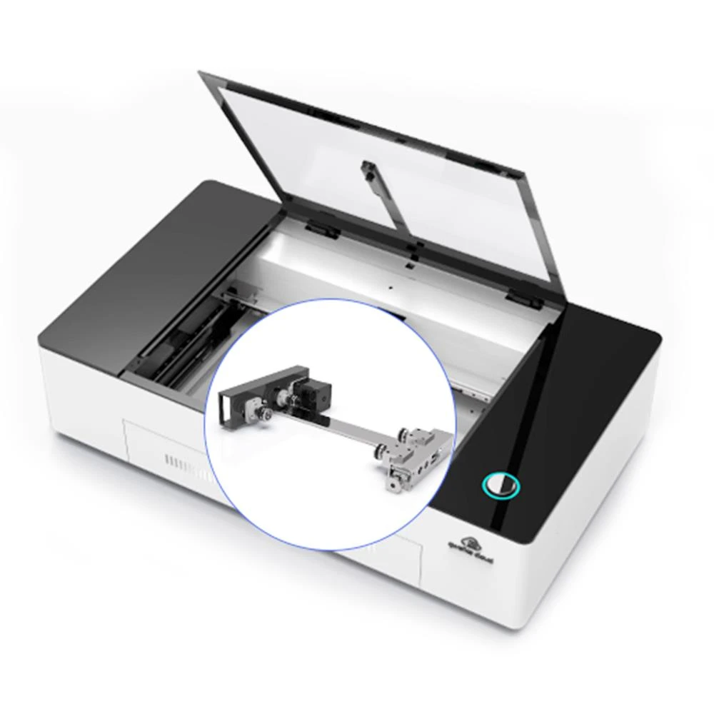 This standard rotary attachment is ideal for engraving cylinder items with your laser, such as glasses, mugs, wine bottles, flashlights, and so on. The rotary engraving diameter is 30mm-74mm, and the engraving length is no more than 245mm.