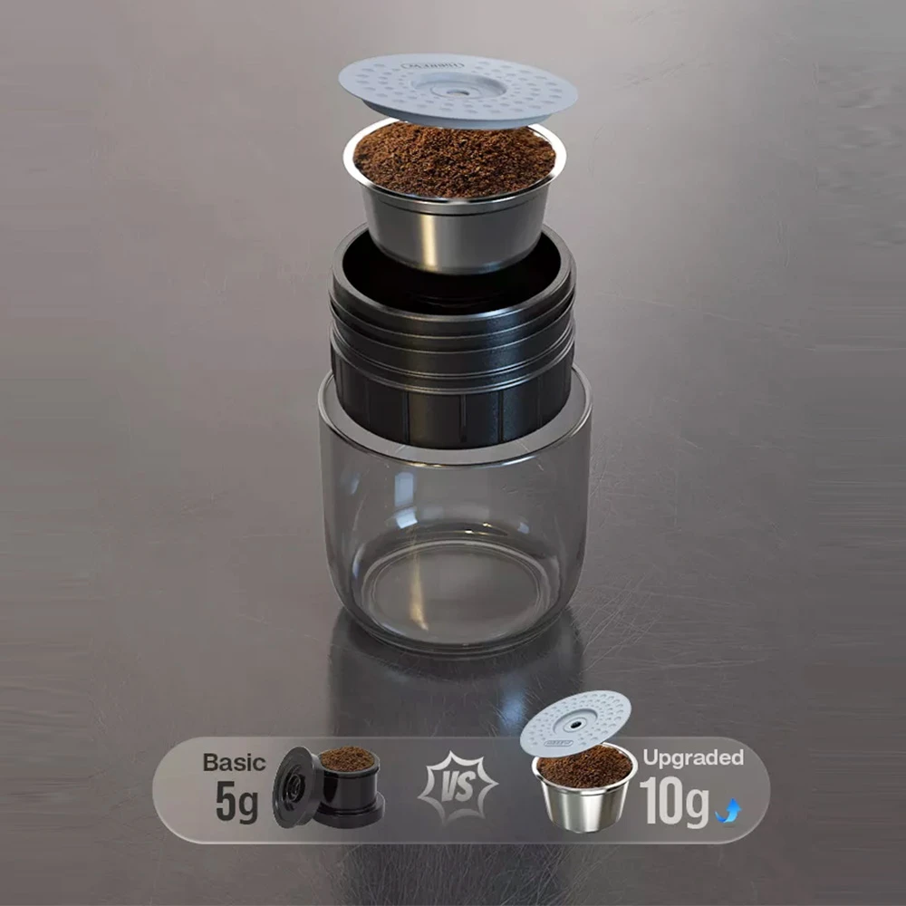 This coffee maker is equipped with 3 adapters: Nes capsule adapter, DG capsule adapter, and 10g stainless steel coffee powder adapter, so that you can always find one for your beverage.