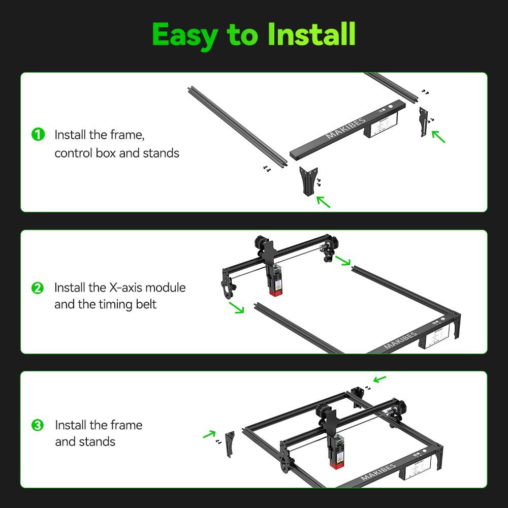 With an all-metal structural frame, the Makibes X1 laser engraver is sturdy and durable, enabling stable and accurate engraving. The machine is in modular design, which can be assembled easily and quickly.