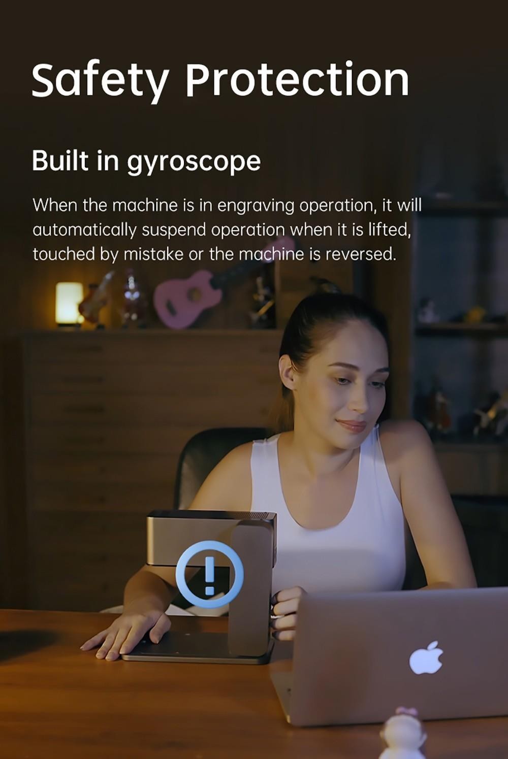 Featured with a built-in gyroscope, it will automatically suspend operation when the machine is lifted, touched by mistake, or the machine is reversed.