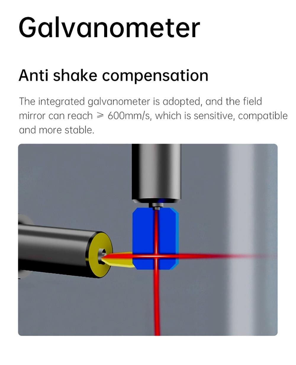 The integrated galvanometer is adopted, and the field mirror can reach 600mm/s, which is sensitive, compatible, and more stable.
