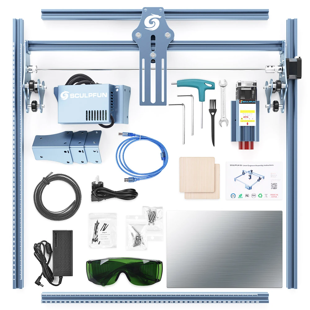 Fast Focusing and High Accuracy Laser Engraving Machine: S9 laser engraver has the fastest focus design and sliding design, you only need to slide the laser and tighten the screw to complete the fast focusing of the laser engraver machine. The X-axis and Y-axis contain precise scale lines, which is convenient for you to measure the size of engraving objects quickly.