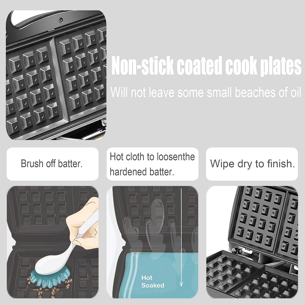 The top and bottom cooking plates have non-stick coating, which is easy for you to clean.