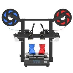 Gemini XS dual extruder 3D printer has 255x255x260mm max print size, supports 100% open source, and features dual color mode, dual material mode, duplication mode (print two identical models at a time), and mirror mode(print two mirror-symmetrical models at a time).