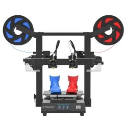 Gemini XS dual extruder 3D printer has 255x255x260mm max print size, supports 100% open source, and features dual color mode, dual material mode, duplication mode (print two identical models at a time), and mirror mode(print two mirror-symmetrical models at a time).