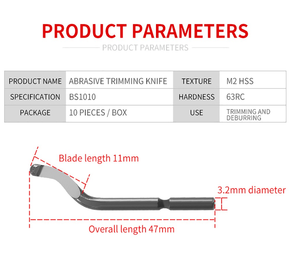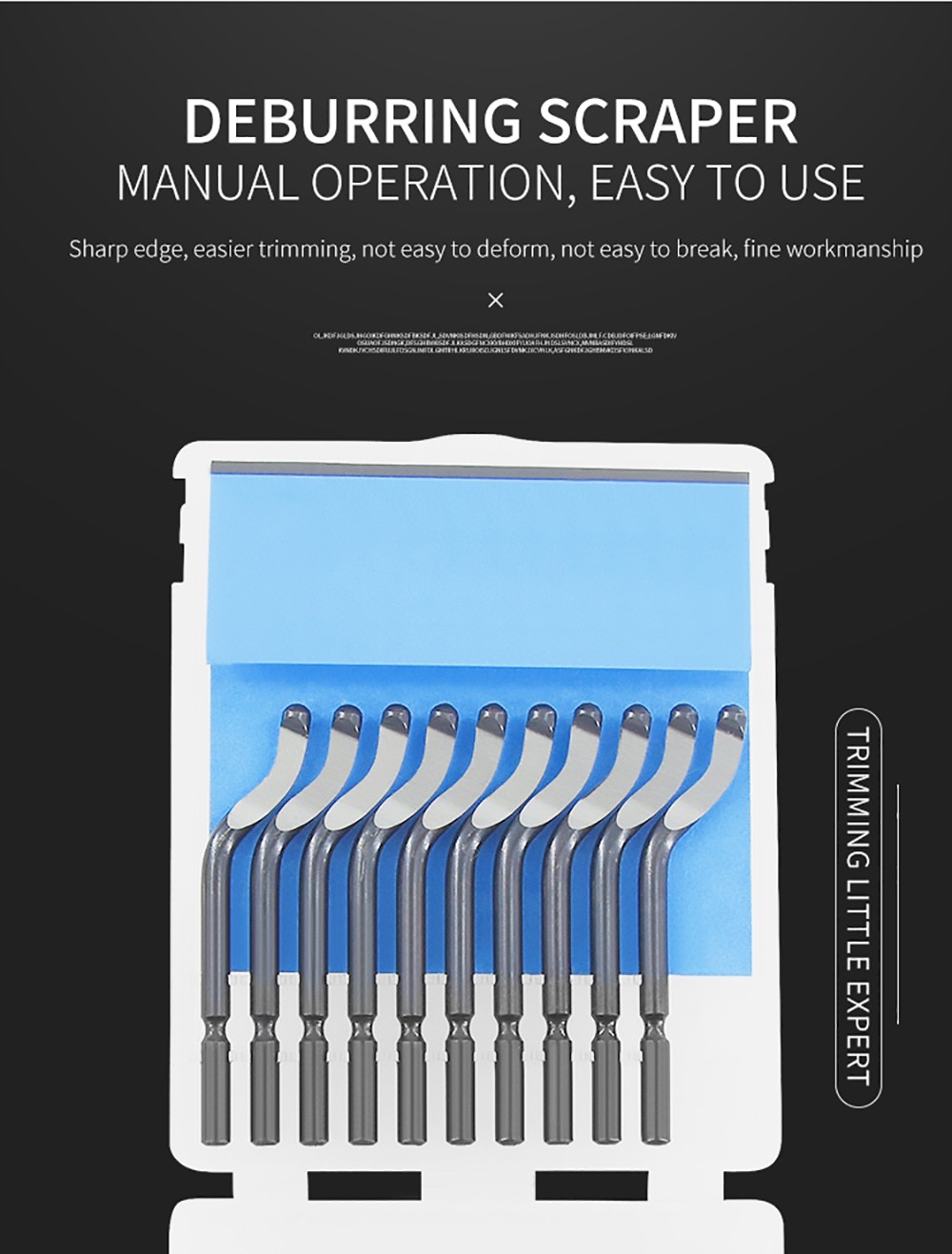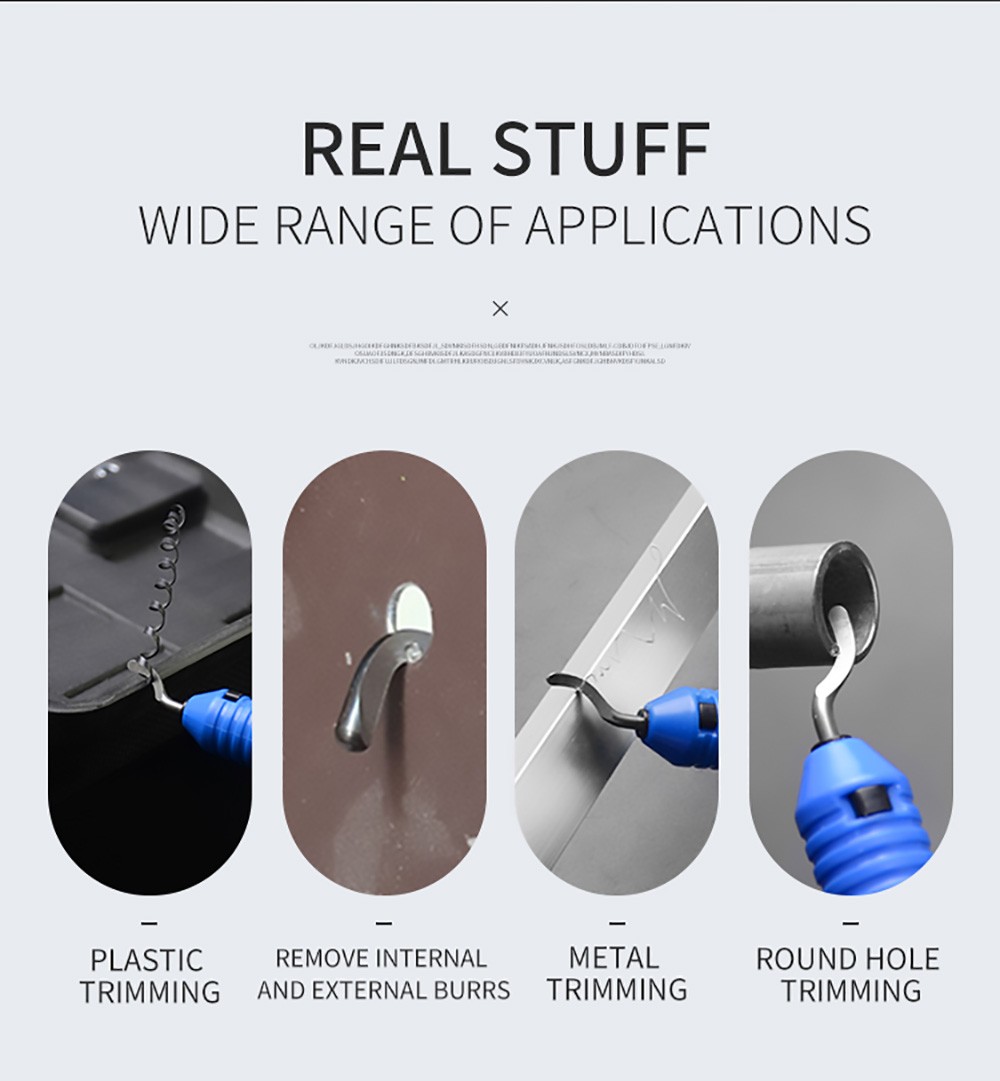 1. This trimming scraper is widely applied in plastic trimming, removing internal and external burrs, metal trimming, and round hole trimming.