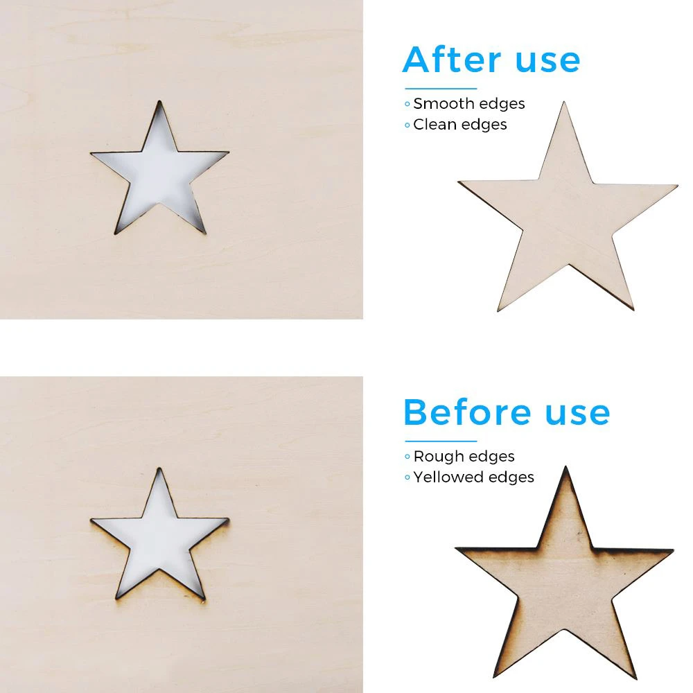 After using this laser-cutting honeycomb table to cut wood, acrylic, and other materials, the edges of the wood are neat and clean, not easy to be yellowed by smoke, and you can get clean cutting work.