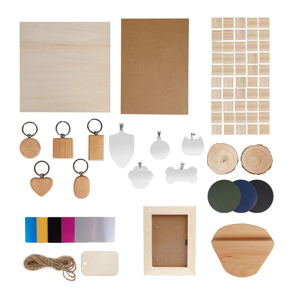 Comes with many different kinds of materials (metal, wood, kraft cardboard, etc.), this material pack can meet your needs for multiple engraving works. Such as a metal business card, dog tag, leather mouse pad, phone stand, and more.