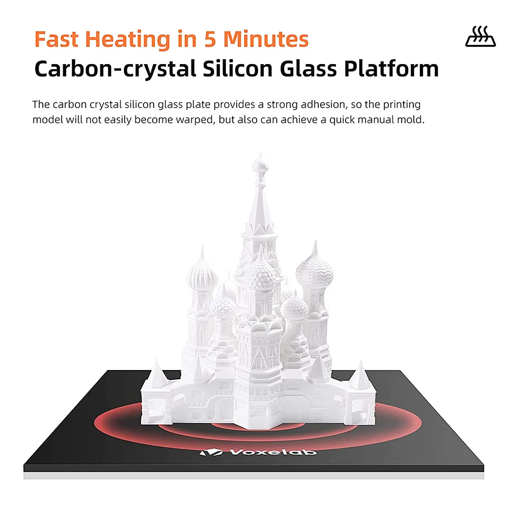 Carbon crystal silicon plate ensures fast heating to 60°C in minutes. Strong adhesion and excellent bottom-layer print effects.