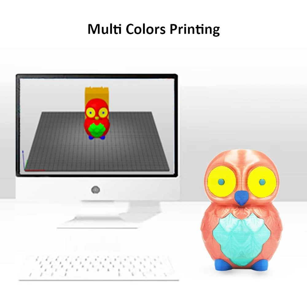 The printer’s 4 extruder modules and 4-in-1-out non-mix color hot end can make multi color printings, which will greatly enrich your 3D printing experience. One-button switching mode makes monochrome conversion into multi-color easier.